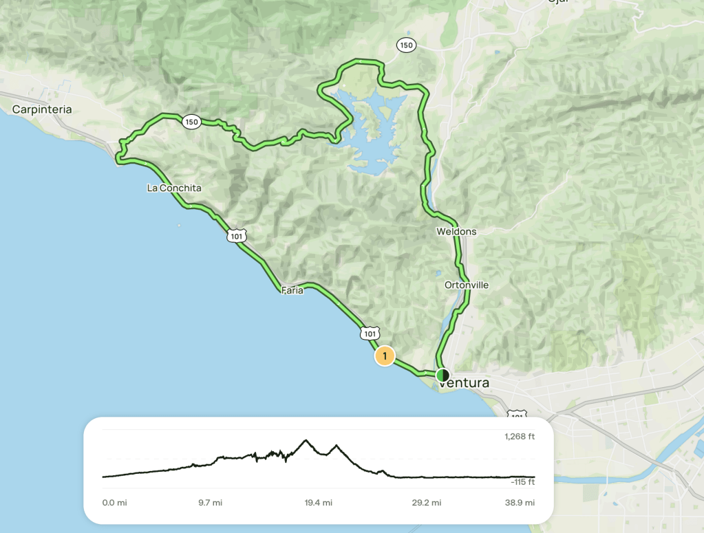 Beginning in Ventura, follow the Ojai/Ventura bike path until forking off on Casitas Vista Rd. which will wrap you around the scenic Lake Casitas. Take this road until reaching highway 150, where you will unlock even more views of the lake while meandering up and down steep terrain. This part is not for the feint of heart! Temperatures often reach 80 degrees Fahrenheit or beyond in late Spring and Summer months, so pack lots of water. The highway will eventually turn into an enjoyable downhill for several miles, where you will fly through beautiful live oak groves and avocado orchards — not to mention a fantastic view of the ocean before reaching Bates Road, which empties out to the revered surf Mecca known as Rincon. From here, simply follow the scenic coastal bike path back to Ventura. This last leg follows the coast the full duration, and has many opportunities to pull over and visit a beach or two — so pack a bathing suit!